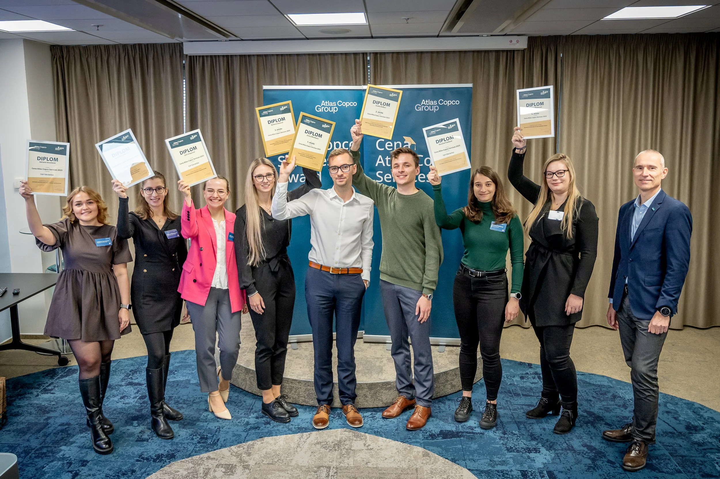 Slavnostní vyhlášení výsledků třetího ročníku soutěže Cena Atlas Copco Services se uskutečnilo ve čtvrtek 25. listopadu v Brně. Celkem bylo oceněno deset studentů, šest nejúspěšnějších z nich si mezi sebou rozdělí výhry v souhrnné výši 31 tisíc korun. Na absolutního vítěze soutěže pak čeká odměna 20 tisíc Kč. Během vyhlášení byli rovněž oceněni i vedoucí vítězných diplomových prací.